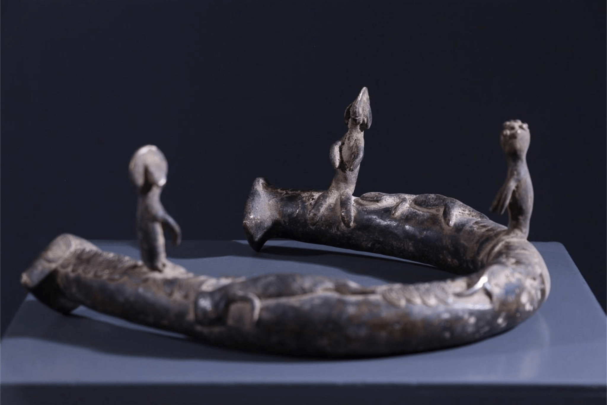 ” Cet épais collier en bronze était destiné à être porté par les membres élevés de la société Mumuye au cours d’évènements politiques et judiciaires. Ces objets de prestige témoignaient de leur rang et conférait l’autorité nécessaire à la prise de décisions importantes pour le village.